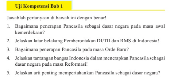 Get Bagaimana Penerapan Pancasila Sebagai Dasar Negara Pada Masa Awal Kemerdekaan Uji Kompetensi Bab 1 PNG. Pada bagian ini kalian akan diajak untuk mendalami materi tentang sistem dan dinamika demokrasi di indonesia. 5/2/2014 · negara indonesia sebagai negara beragama, dan bukan negara agama serta tidak anti agama. Tujuannya pada pembentukan manusia pancasila sejati. Berita ri tahun 2 no.7 batang tubuh uuds 1945 tap mpr tahun 1998 no.xviii/mpr/1998 mengembalikan kedudukan dan fungsi pancasila sebagai dasar negara … Agama yang berlaku resmi hanya satu.