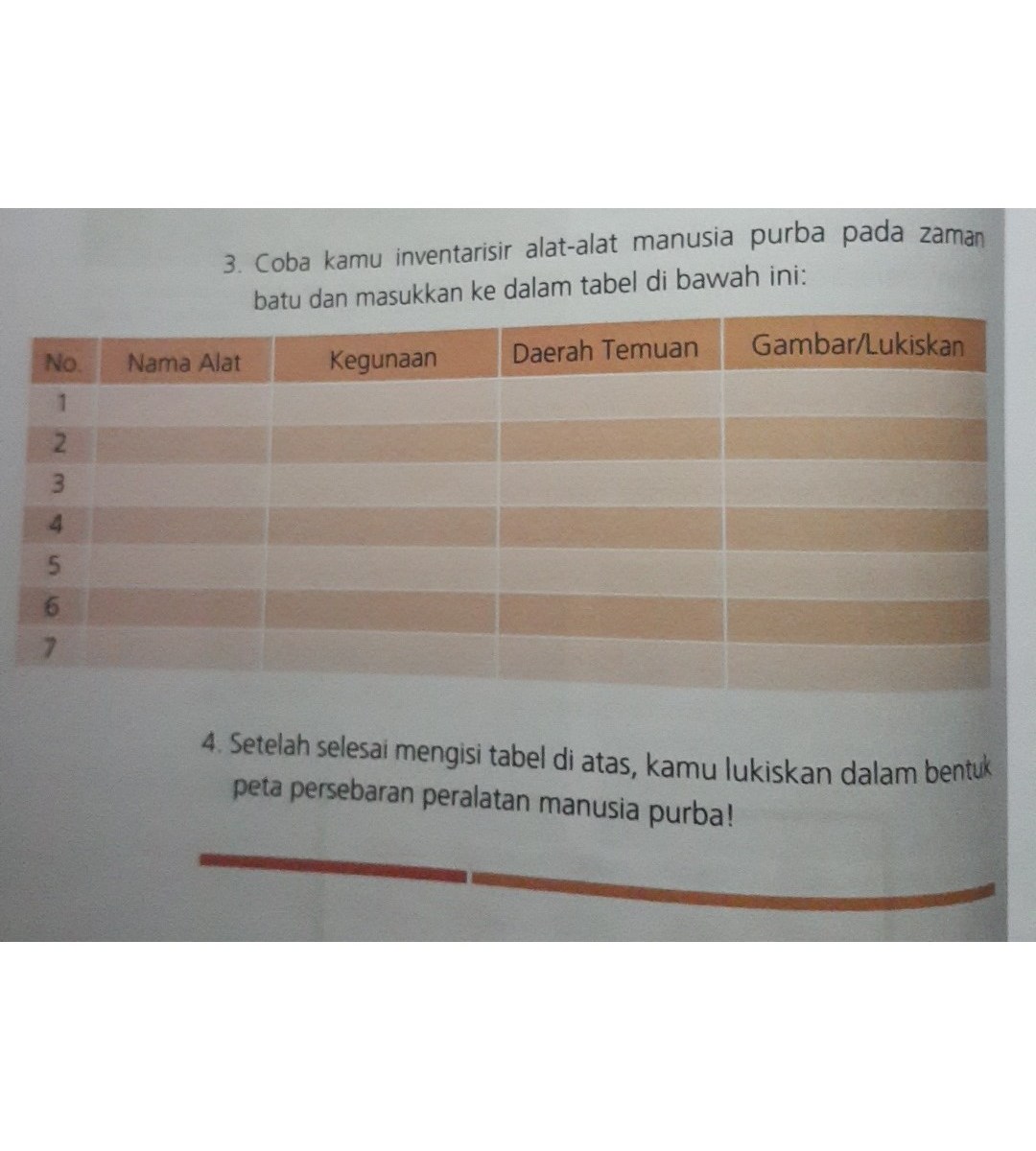 Peralatan sebagai sarana untuk memenuhi. Peralatan yang dibuat oleh manusia purba . Nisrina63 karena pada zaman dahulu hanya ada batu tulang dan kayu sehingga masih menggunakan seadanya atau tradisional dr alam dan lingkungan. Pada zaman batu, peralatan yang digunakan manusia purba terbuat dari batu. Mengapa manusia purba membuat peralatan dari bahan batu, kayu, tulang? Semakin maju ketika homo erectus membuat berbagai alat batu dari. Coba kamu diskusikan, mengapa manusia purba membuat peralatan dari bahan batu, kayu, dan tulang? Pada zaman besi, manusia purba sudah mampu membuat peralatan yang lebih sempurna dengan menggunakan bahan baku bijih besi yang dileburkan .
