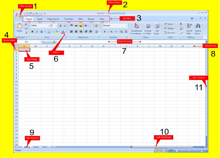 Workbook dalam microsoft excel secara default terdiri atas 3 lembar . Pengertian worksheet excel adalah lembar kerja spreadsheet . Sebagai buku kerja (workbook) elektronik. Mulai versi excel 2007 dengan extensi standart.xlsx, jumlah baris dalam 1 lembar sheet microsoft excel adalah 1.048.576 dan 16.384 kolom. Pada artikel ini, kamu akan mengetahui jumlah baris dan kolom yang disediakan oleh microsoft excel dalam lembar kerja/sheetnya.