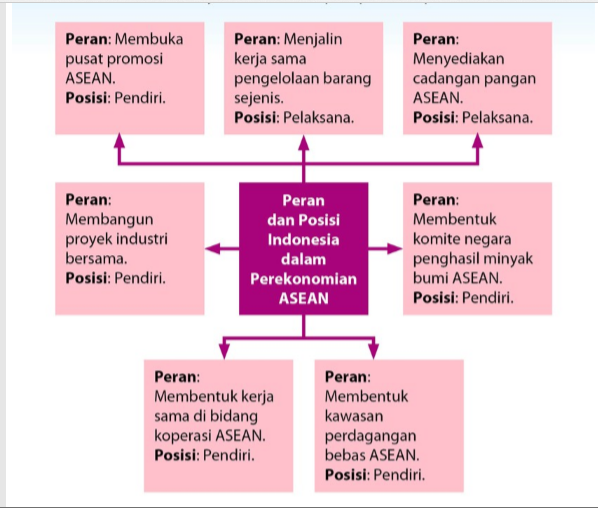Berikut ini contoh peranan indonesia sebagai pelopor dan sekaligus pendiri organisasi kerja sama ekonomi antarnegara. Ini jawaban peta pikiran peranan dan posisi indonesia dalam kancah perekonomian asean. Soal dalam buku tematik kelas 6 sd tema 5. Afta bertujuan menjadikan kawasan asean . Pertama terjawab peran dan posisi indonesia bidang ekonomi dalam lingkup asean indonesia adalah tuan rumah helamgrop helamgrop jawaban . Indonesia merupakan salah satu negara pelopor afta (asean free trade area) yang dibentuk pada 1992. Peta pikiran peran dan posisi indonesia di bidang ekonomi dalam lingkup asean tema 5 kelas 6 jawaban soal halaman 5 penjelasan lengkap. Asean economic community yaitu kerja sama asean di bidang ekonomi. Manfaat kerja sama asean di bidang ekonomi adalah. •menganalisis posisi dan peran indonesia dalam kerja sama di bidang ekonomi, politik, sosial, budaya, teknologi, dan pendidikan dalam lingkup asean. Peran indonesia dalam asean meliputi berbagai bidang seperti politik, sosial, budaya, dan ekonomi.