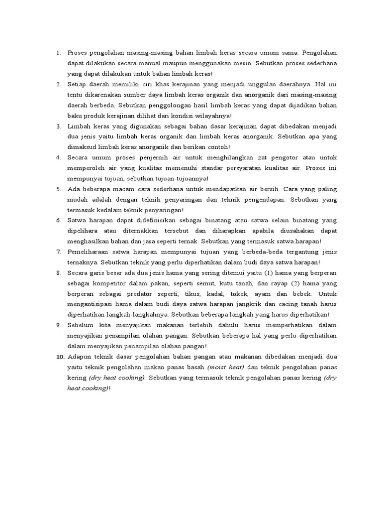 Bentuk dalam pengolahan pangan dapat dibuat dengan cara memotong bahan pangan. Beberapa hal yang perlu diperhatikan dalam menyajikan penampilan olahan . Sebutkan 6 hal yang perlu diperhatikan dalam menyajikan penampilan olahan pangan 5. Sebutkan 3 manfaat bekalul bagi kesehatan tubuh pliss dong jawab​ . 3 sebutkan dan jelaskan teknik pengolahan makanan panas basah (moist heat) y.