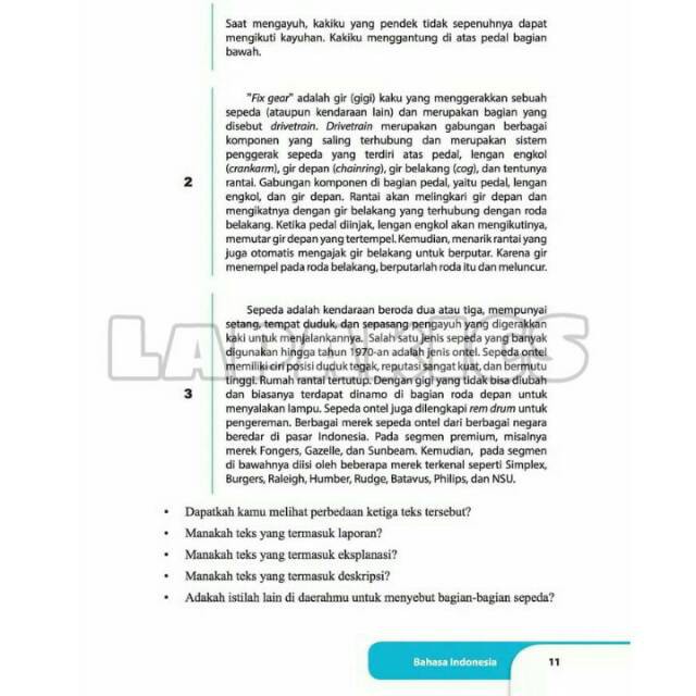 PNG. 3.1 mengidentifikasi informasi dari laporan percobaan yang dibaca. Berikut terjemahan dari kata sepeda: Spesimen adalah contoh atau keseluruhan bagian dari kelompok organisme . Mendaftar ciri penggunaan bahasa pada teks deskripsi. Bagian teks lain (cerpen, novel, lagu, iklan, dll).