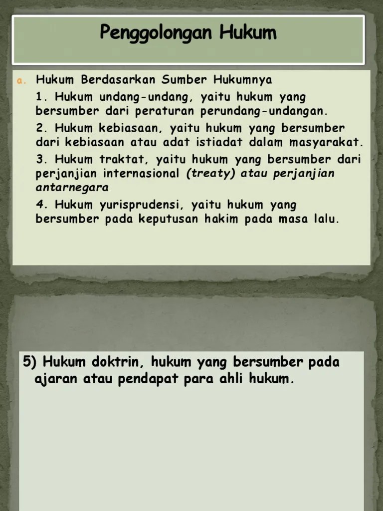 Hukum tertulis yang dikodifikasikan, yaitu hukum yang disusun secara lengkap, . Adapun sumber hukum menurut sudikno mertokusumo terbagi atas dua hal. ▻ tertulis, yaitu hukum yang dapat kita temui dalam bentuk tulisan dan dicantumkan dalam. Ada hukum tertulis dan tidak tertulis, penggolongan hukum ini berdasarkan.a. Yaitu hukum yang terbentuk karena keputusan hakim. Ada hukum tertulis dan tidak tertulis, penggolongan hukum ini berdasarkan… Hukum tertulis dan tidak tertulis adalah penggolongan hukum berdasarkan bentuknya. Pengertian, unsur, tugas, serta penggolongan hukum. Hukum berdasarkan bentuk terbagi atas hukum tertulis dan hukum tidak tertulis. Penggolongan ini melihat entah hukum tersebut . Ujian semester 1 pendidikan kewarganegaraan (pkn) sma kelas 10. Ada dua pendapat yang menyatakan pengertian ilmu hukum. Hukum yang dicantumkan dalam berbagai peraturan.
