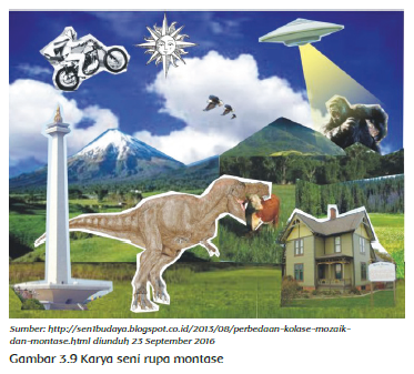 Karya montase kolase aplikasi dan mozaik merupakan karya seni rupa.