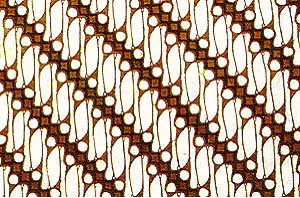 Motif hias ini biasanya digunakan pada karya tekstil atau karya kayu yang dibuat dengan teknik menggambar atau mengukir.
