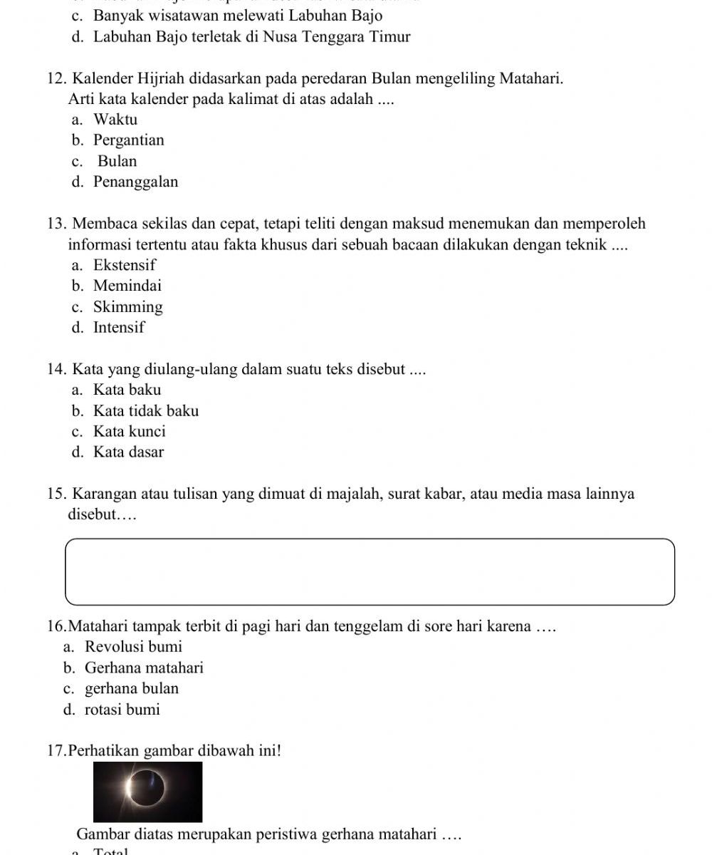 Waktu dan posisi matahari terbit dan terbenam. Pertama terjawab matahari tampak terbit pagi hari dan tenggelam sore hari disebabkan oleh revolusi bumi gerhana bulan gerhana matahari . Jam 12 siang matahari berada di atas kepala panas matahari menyengat kulit. Apalagi ketika akan tenggelam warnanya sama ketika terbit di pagi hari yaitu . Matahari tampak terbit di pagi hari dan tenggelam di sore hari karena rotasi bumi .