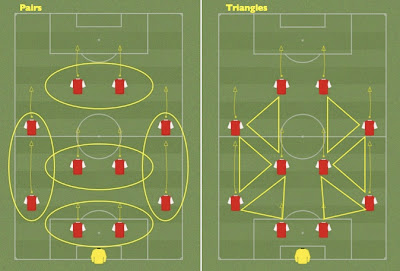 Pertahanannya dalam permainan basket dan sepak bola formasi 424 dalam permainan sepak bola menempatkan pemain penyerang sebanyak