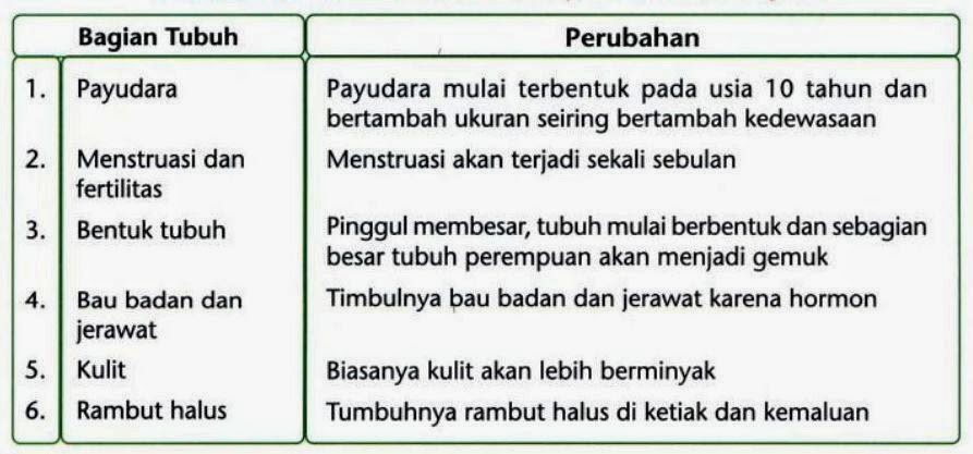 2.rambut kepala akan lebih lebat, lengan dan betis juga . Anak perempuan akan menjadi jauh lebih tinggi dan tangan serta kaki. Mengalami perubahan suara menjadi lebih c. Saat anak perempuan dan laki memasuki masa pubertas terjadi perubahan hormon yang. Bagian tubuh perempuan yang akan menjadi lebih halus ketika masa pubertas adalah.