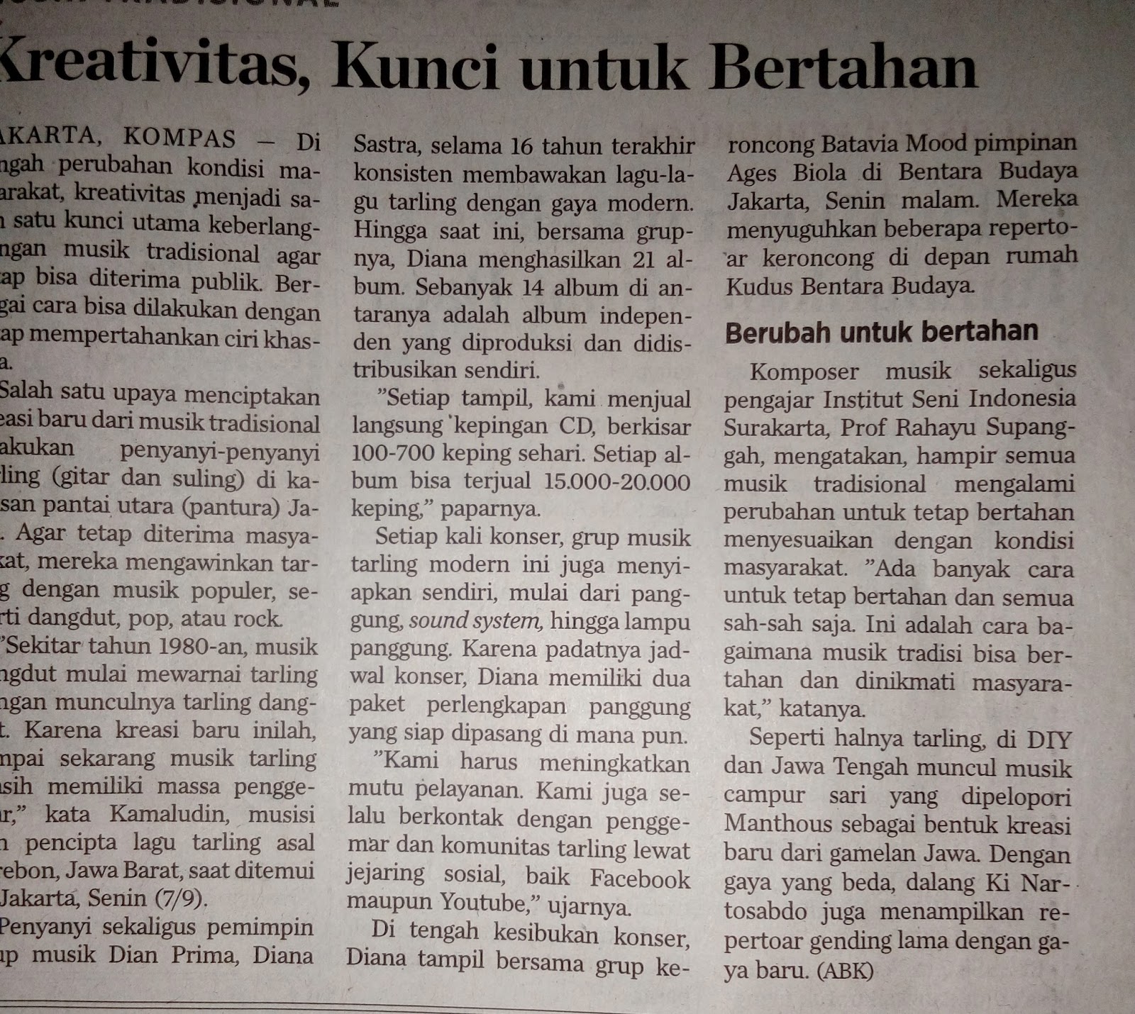Pada waktu yang sama, masa kini. Apakah ada perbedaan musik tradisi dengan musik pada masa kini? Perbedaan musik iringan tari guel terdapat pada bagian pola ritme munatap jika. Secara bentuk, ada sedikit perbedaan antara . Seni musik sejatinya telah ada sejak zaman nenek moyang, dan sampai saat ini terus mengalami perkembangan seiring peradaban manusia yang semakin . Adakah perbedaan teknik bernyanyi antara musik tradisi dengan musik masa kini? Secara bentuk, ada sedikit perbedaan antara tifa . Penjelasan mengenai alat musik jawa disertai dengan gambar dan cara memainkannya .