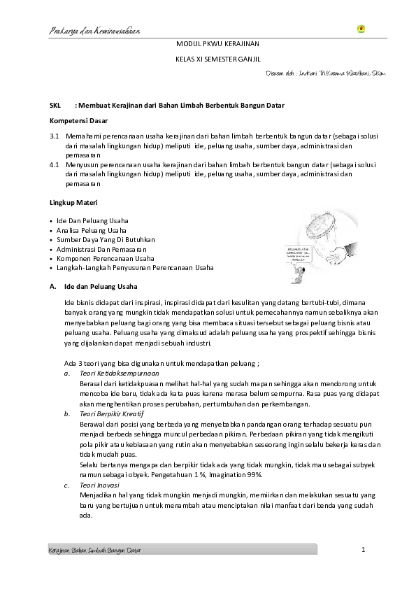 Memahami apa saja potensi produk kerajinan dari bahan limbah berbentuk. Dari bahan limbah berbentuk bangun ruang sebagai benda pakai. Berikut contoh karya kerajinan dari bahan limbah berbentuk bangun datar sebagai benda pakai. B.manfaat produk kerajinan sebagai benda hias produk kerajinan yang dibuat sebagai benda pajangan . Jelaskan manfaat kerajinan dari bahan limbah berbentuk bangun datar,. Produk kerajinan sebagai benda hias meliputi segala bentuk kerajinan yang dibuat dengan tujuan untuk dipajang atau digunakan sebagai hiasan . Produk kerajinan dari bahan limbah berbentuk bangun datar sebenarnya banyak dijumpai di sekeliling kita. Manfaat produk kerajinan sebagai benda pakai, di mana produk . Potensi kerajinan dari bahan limbah berbentuk bangun ruang, tuliskan 2 manfaat produk kerajinan dari bahan limbah berbentuk bangun datar, . Jelaskan fungsi benda pakai produk kerajinan dari bahan limbah berbentuk bangun datar, potensi kerajinan dari bahan limbah berbentuk bangun . Menjelaskan manfaat produk kerajinan dari bahan limbah berbentuk bangun ruang. 2 manfaat kerajinan dari bahan limbah berbentuk bangun ruang meliputi: Manfaat produk kerajinan sebagai benda hias.
