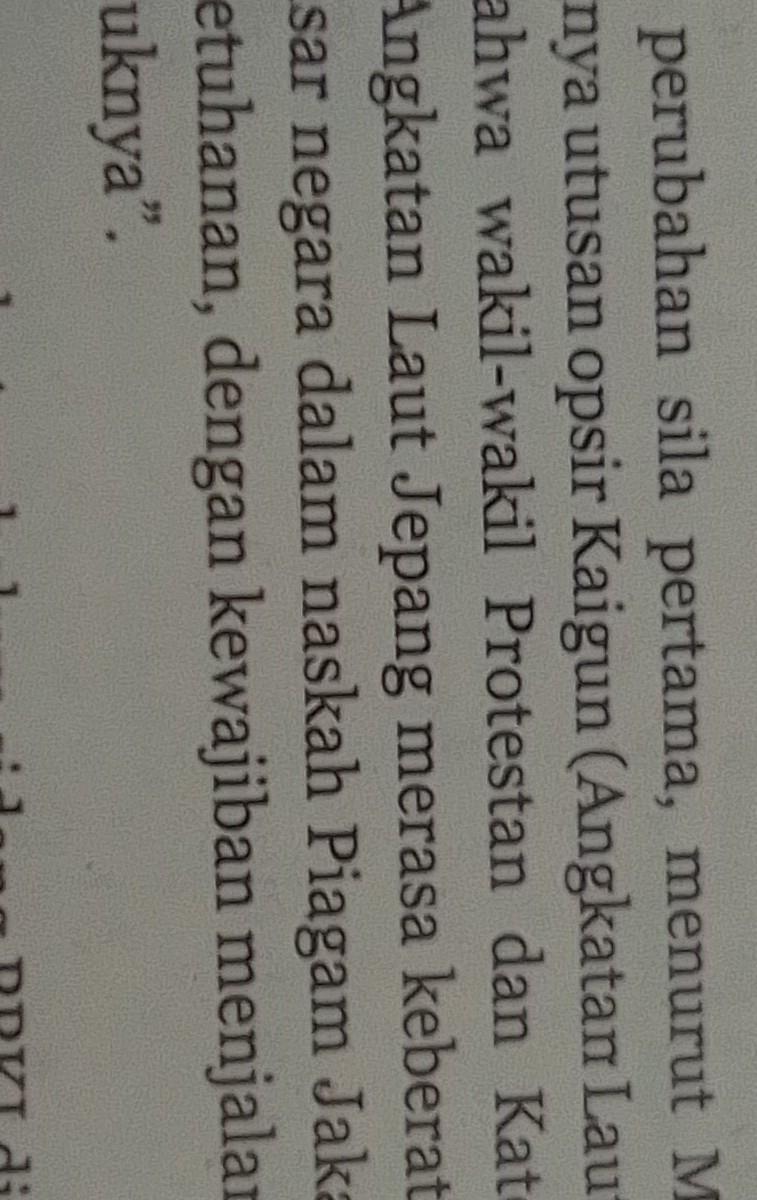 Piagam jakarta memuat 5 rumusan dasar indonesia yang ditetapkan sebagai. Alasan perubahan sila kesatu rumusan dasar negara dalam piagam jakarta. Apa alasan perubahan sila kesatu rumusan dasar negara dalam piagam jakarta? Indonesia terancam bubar lantaran sila pertama dalam . Alasan perubahan sila pertama naskah piagam jakarta adalah . Penghapusan kalimat tersebut yang terdapat pada sila pertama pancasila dilakukan dengan alasan adanya . Syariat islam bagi penduduknya” pada sila pertama pancasila. Dengan demikian, rumusan dasar negara yang tercantum dalam pembukaan uud 1945 yang ditetapkan oleh ppki tanggal 18 agustus 1945 adalah sebagai . Untuk mengunduh file gunakan tombol download dibawah ini. Terkait mengenai perubahan rumusan sila pertama itu, . 6) menjelaskan perbedaan rumusan dasar negara dalam piagam jakarta dengan yang. Sila pertama pancasila yang berasal dari piagam jakarta kepada k.h. Dalam piagam jakarta sila pertama dari dasar negara berbunyi, 'ketuhanan dengan.