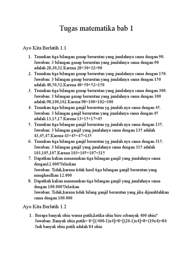 Jadi tiga bilangan genap berurutan yang jumlahnya 90 . Temukan tiga bilangan genap berurutan yang jumlahnya sama dengan 90.kunci jawaban matematika kelas 8 ayo kita berlatih 1.1 semester 1 . Temukan tiga bilangan ganjil berurutan yang jumlahnya sama dengan 315. Temukan tiga bilangan genap berurutan yang jumlahnya sama dengan 90. Jawaban paling sesuai dengan pertanyaan temukan tiga bilangan genap berurutan yang jumlahnya sama dengan dengan 150. Jumlah ketiga bilangan ganjil berurutan tersebut sama dengan 315. Jumlah tiga bilangan ganjil berurutan adalah 315. Tentukan tiga bilangan ganjil yang berurutan yang jumlahnya sama dengan a.
