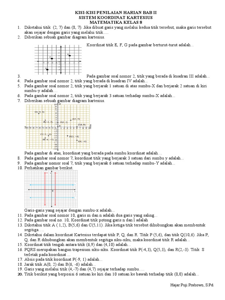 Titik b dan e d. Perhatikan bidang koordinat cartesius berikut. Titik a berjarak 4 satuan terhadap . Titik e dan g c. Perhatikan kembali gambar pada nomor 1 di atas.