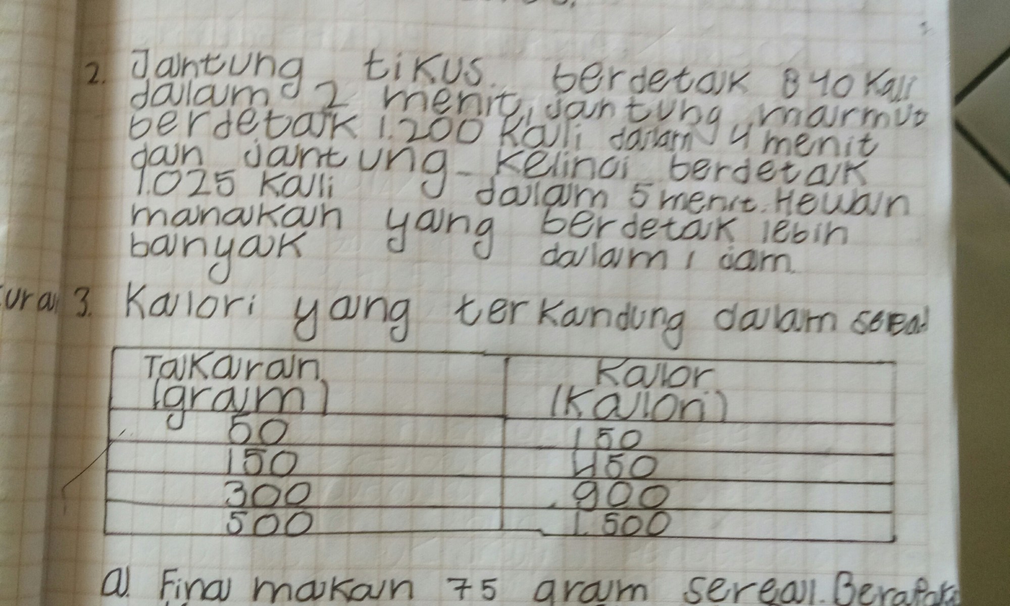 Pejalan kaki adalah istilah dalam transportasi yang . 1 di antara pejalan kaki berikut, yang merupakan 4,8 a. Rosi berjalan 4,8 km dalam 1 jam. Jadi, 1 kalori mengandung 0.333 gram sereal. Di antara pejalan kaki berikut, yang merupakan pejalan kaki paling cepat adalah.