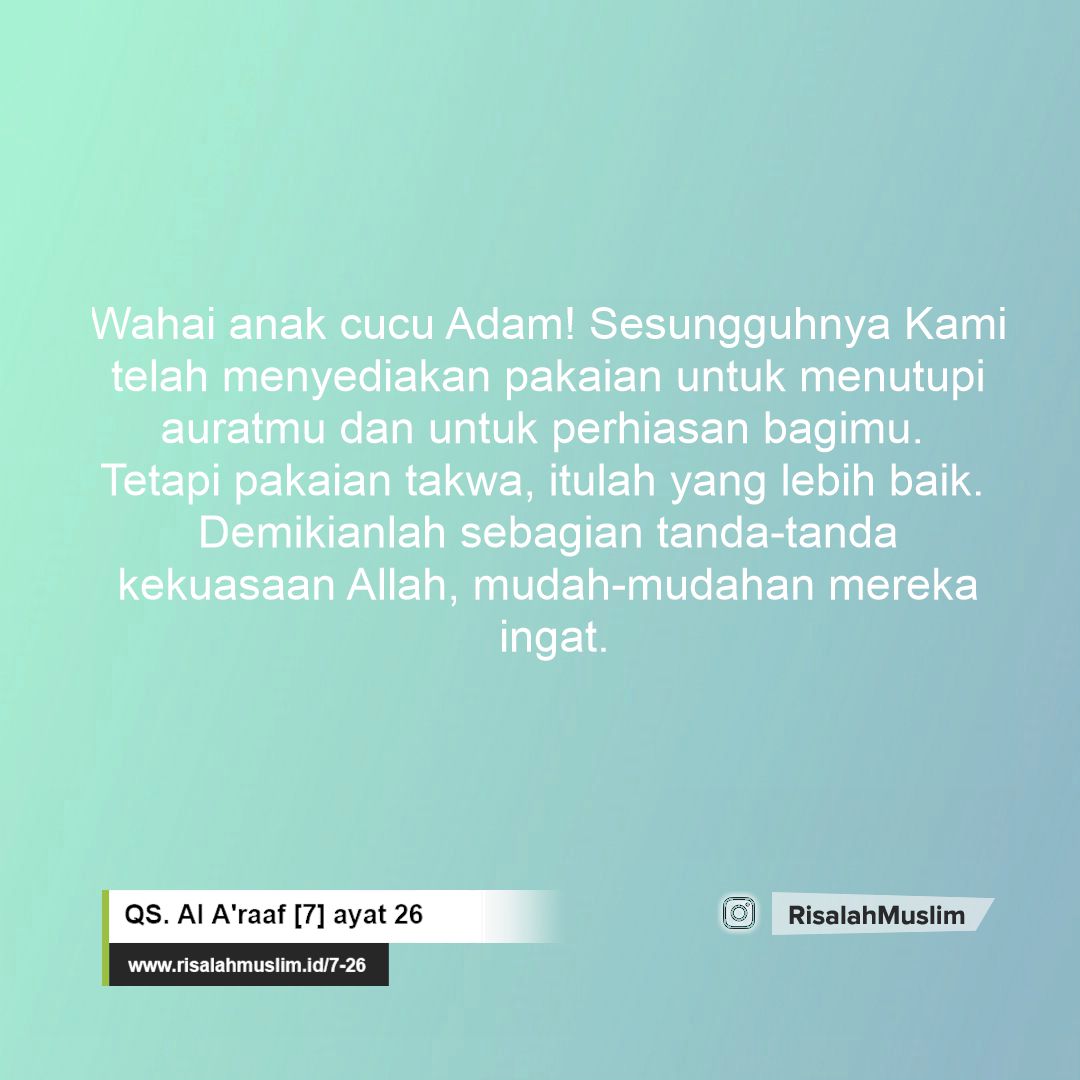 Pictures. Pai hari / tanggal : Menurut surah al a'raf ayat 26 pakaian yang paling baik di mata allah swt, adalah. Menurut surah al a'raf ayat 26 pakaian yang paling baik di mata allah swt adalah pakaian takwa. Dengan ramah dan amat sederhana. Sy mau tanya sy sudh menikah sudah .