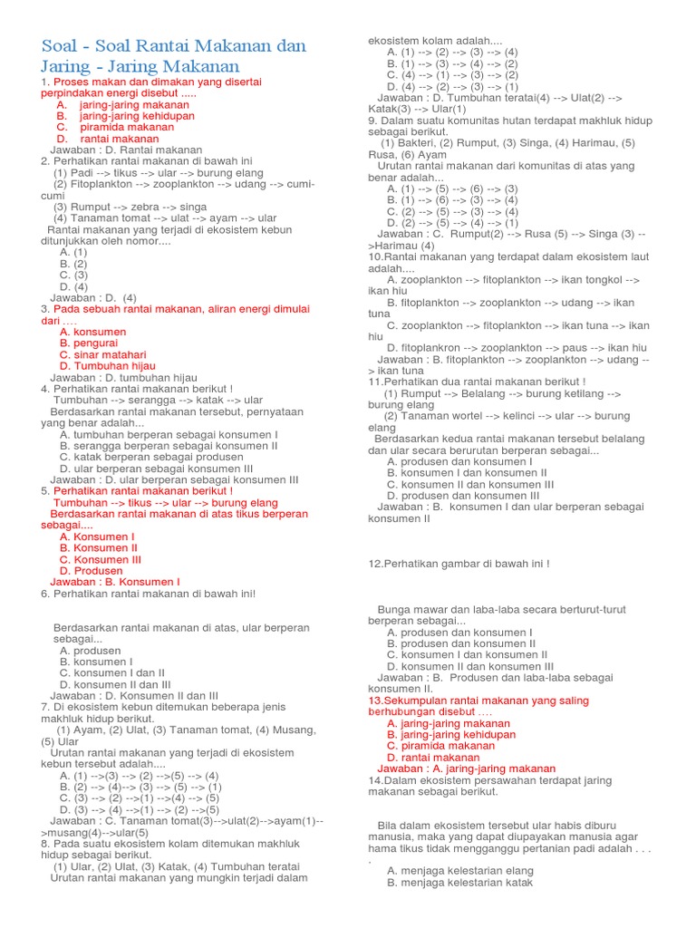 Beberapa jenis konsumen memakan tumbuhan. Dalam rantai makanan terdapat tiga macam rantai pokok yang . Kumpulan dari berberapa rantai makanan di dalam sebuah ekosistem disebut . Makhluk hidup yang dapat membuat makanan sendiri disebut produsen. Satu jenis hewan dapat terlibat dalam beberapa rantai makanan, demikian juga dengan produsen. Kumpulan Dari Beberapa Rantai Makanan Dan Dapat Memakan Atau …