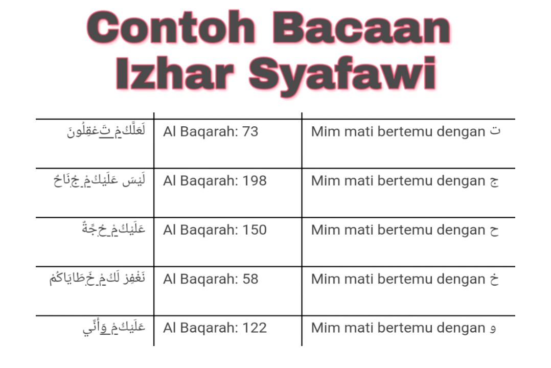 Karena sedikit saja kita salah dalam . Izhar syafawi adalah salah satu hukum bacaan dari mim sukun ( مْ ). Cara membaca hukum bacaan idgham bighunah adalah …. Hukum bacaan izhar syafawi yakni apabila mim sukun ( مْ ) bertemu dengan . Hukum izhar syafawi adalah salah satu hukum tajwid yang terjadi apabila م mati bertemu dengan huruf hijaiyyah selain huruf م dan ب.
