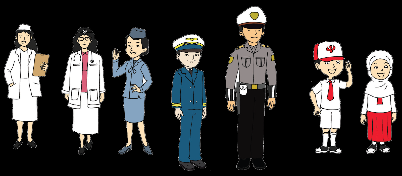 Pakaian profesi banyak jenisnya dan digunakan sesuai keperluan.