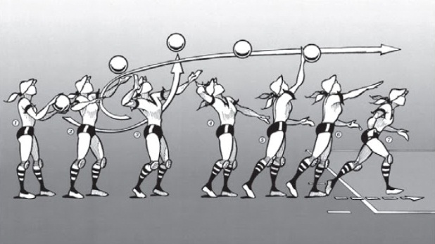 Kedua lengan lurus dan fokuskan pandangan pada gerakan bola.